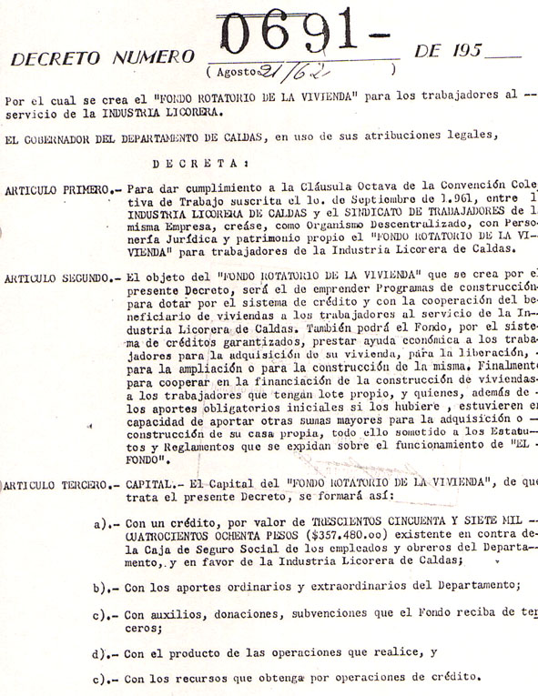 Fondo Rotatorio de la Vivienda para los trabajadores de la Industria Licorera de Caldas