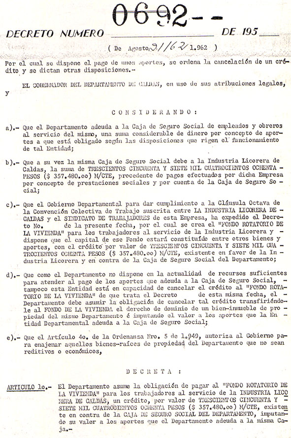 Fondo Rotatorio de la Vivienda para los trabajadores de la Industria Licorera de Caldas